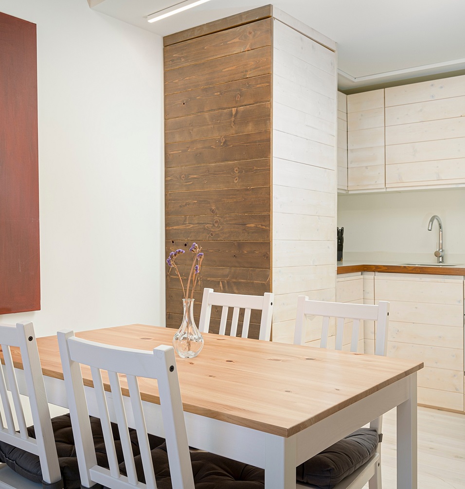 El inmueble, de alquiler íntegro, cuenta con cinco habitaciones dobles con baño, una de ellas accesible. Cocina equipada con frigorífico, vitrocerámica, horno, microondas y lavavajillas. Zona separada con lavadora/secadora. Chimenea. Ventilación con recuperador de calor. Techos de madera en la planta primera. Habitaciones aisladas acústicamente. Y, si no es suficiente, televisión e internet..